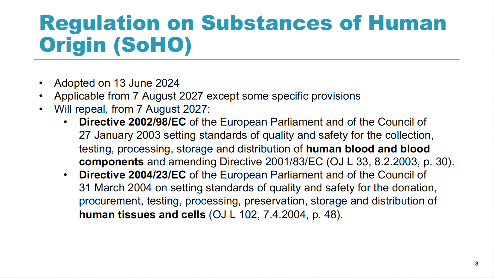 EU Regulation 2024/1938 on substances of human origin intended for human application (EU Regulation on SoHO)